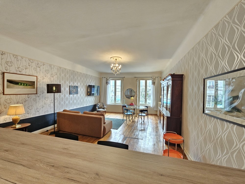 Charmant appartement au cœur de la ville, il saura vous séduire par ses espaces et sa déco. Situé au 1er étage avec vue sur la place de la mairie là ou il y a le marché, facilité pour se garer avec parking et commerces a proximité.