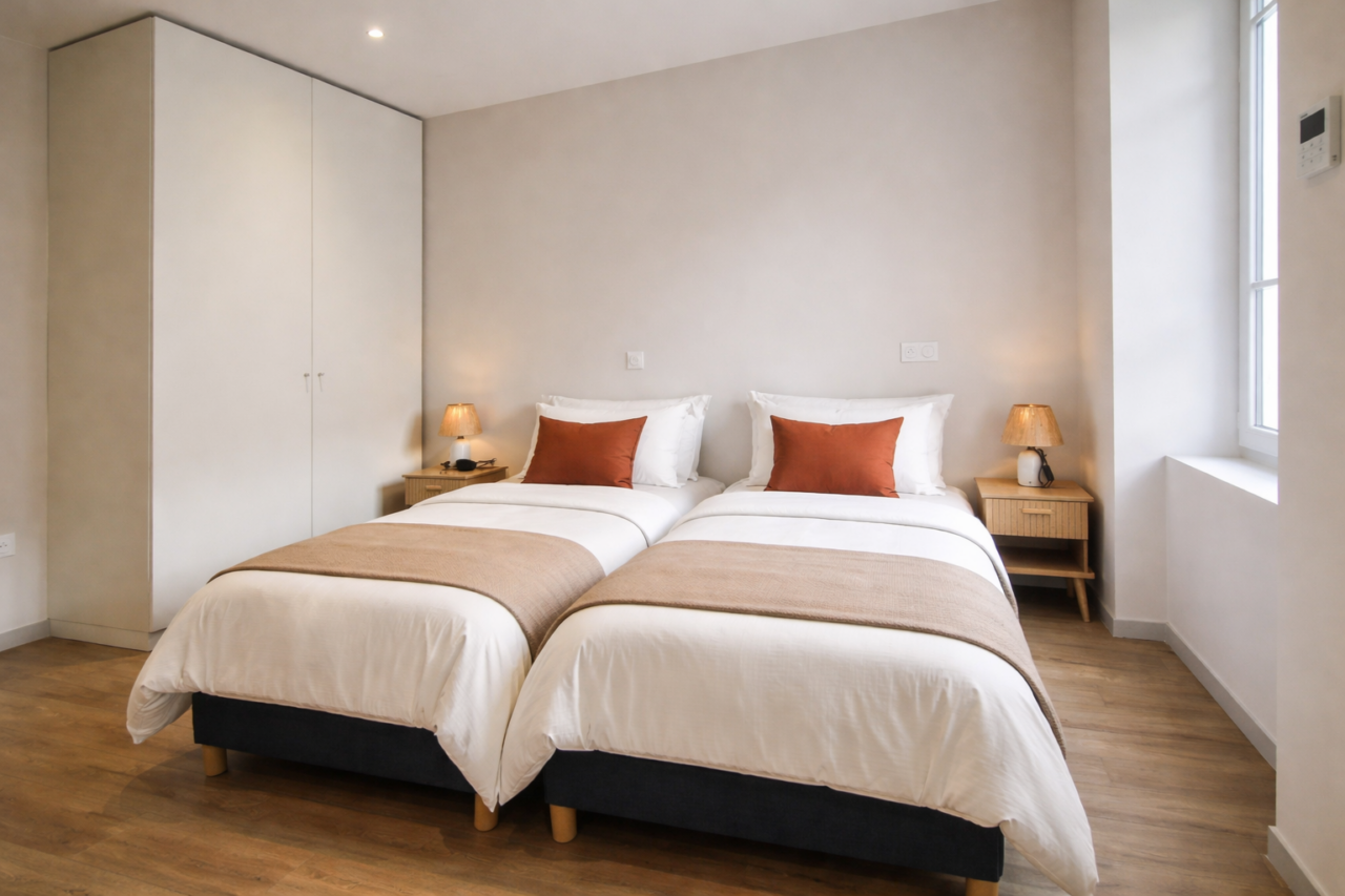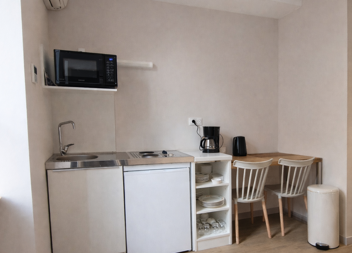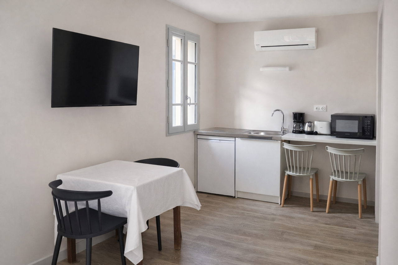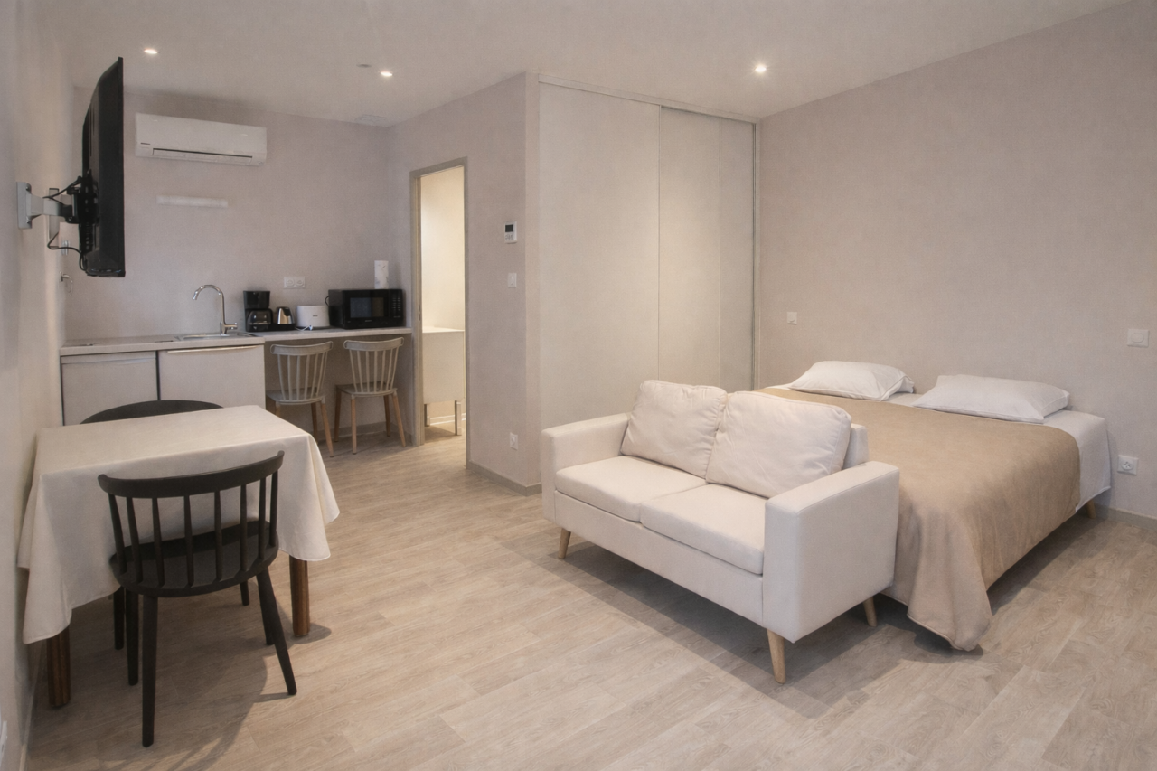À seulement 50 mètres des Thermes de Bourbon-Lancy, l’Hôtel des Thermes bénéficie d’une situation exceptionnelle, idéale pour les curistes comme pour les voyageurs en quête de confort et de tranquillité. Cette charmante demeure propose 6 studios entièrement rénovés, récemment remis à neuf et pensés pour offrir un haut niveau de confort et une grande fonctionnalité. Climatisés, soigneusement aménagés et décorés avec sobriété, ils disposent d’équipements modernes pour un séjour agréable, quelle que soit sa durée. Les studios N°1, N°2, N°6 sont réservables du dimanche au dimanche. (Idéal pour les cures Fibromyalgie ) Les studios N°3, N°4, N°5 sont réservables du Mercredi au Mercredi La proximité immédiate des Thermes permet un quotidien sans contrainte : tout est accessible à pied. Le cadre est calme, propice au repos, tout en restant proche du centre-ville, des parcs thermaux et des principaux sites de Bourbon-Lancy. L’établissement se compose de 2 studios en rez-de-chaussée, 3 studios à l’étage et 1 studio dans une maison indépendante accessible en rez-de-chaussée également, offrant différentes configurations selon les besoins. Stationnement facile dans la rue à proximité immédiate. Ouvert toute l’année, l’Hôtel des Thermes accueille curistes, professionnels et vacanciers. Classement *** en cours (BBC 3).